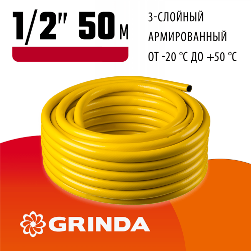 Шланг для полива армированный GRINDA 8-429003-1/2-50_z02, используется на садово-огородных участках при проведении поливочных или иных работ, требующих водоснабжения. Эластичный трехслойный шланг изготовлен из высококачественного ПВХ и армирован прочными полиэстеровыми нитями. Высокая устойчивость формы шланга достигается благодаря особой технологии армировки: нити накладываются под оптимальным углом к горизонтальной оси шланга. За счет этого диаметр и длина шланга остаются стабильными, шланг не перекручивается и не перегибается. Поверхность шланга не восприимчива к ультрафиолетовым лучам. Шланг является экологически чистым изделием - не содержат кадмий и барий. Внутренняя поверхность шланга исключает возможность возникновения водорослей.