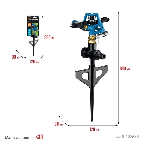 Распылитель импульсный PROLine RB-P GRINDA 8-427653_z02, предназначен для стационарного полива растений при подключении к водопроводному шлангу с помощью соединителя.