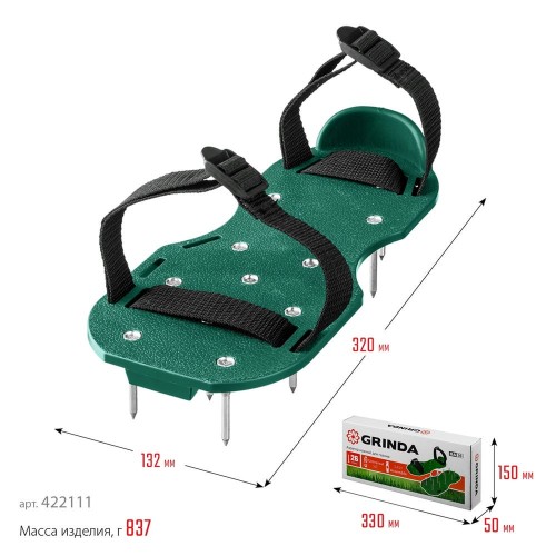 GRINDA GA-26, 26 стальных шипов, длина 50 мм, для газона, ножной аэратор (422111)