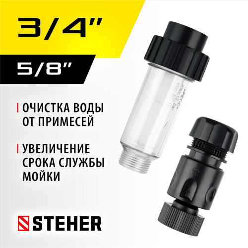 Фильтр входной STEHER 75402-2, предназначен для очистки входной воды от механических примесей. Разборная конструкция для легкой очистки. Быстросъемное соединение для стандартного подключения шлангов. Адаптер-переходник на шланг 3/4'' в комплекте. Сетчатый фильтр тонкой очистки. Подходит для моек HPW-180B, HPW-200B, HPW-240B.
