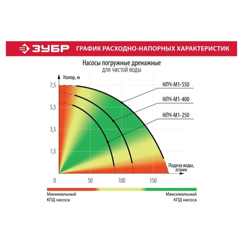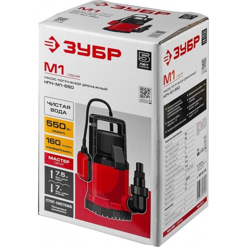 ЗУБР 550 Вт, 160 л/мин, насос погружной дренажный для чистой воды НПЧ-М1-550