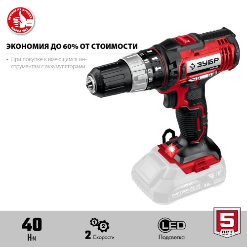 Ударная дрель-шуруповерт ЗУБР - универсальный инструмент для сверления бетона, кирпича, камня и заворачивания метизов. Значительный крутящий момент на первой скорости позволяет выполнять работу со сверлами и крепежом больших диаметров, а высокие обороты на второй скорости - сверлить или выполнять работу быстрее
