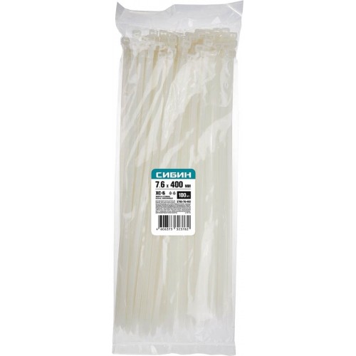 СИБИН 400х7.6 мм, 100 шт, хомуты нейлоновые белые 3786-76-400