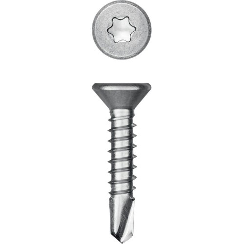 Саморезы с потайной головкой и сверлом изготовлены в соответствии со стандартом DIN7504P из нержавеющего прутка. Легирование никелем, хромом и марганцем полностью сохраняет аустенитную структуру кристаллической решетки, благодаря чему нержавеющие саморезы обладают хорошей прочностью и пластичностью, немагнитными свойствами и невысокой электропроводностью. Саморезы легко вкручиваются обычным шуруповертом или отверткой.