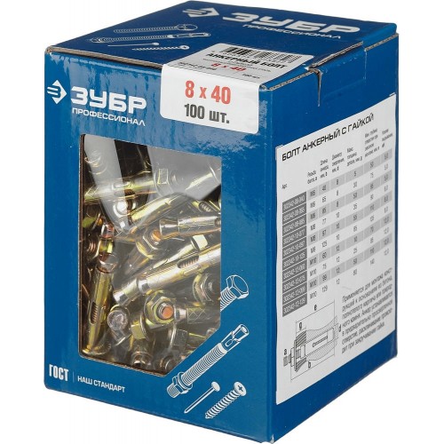 Анкерный болт ЗУБР 302342-08-040, предназначен для крепления различных материалов к бетону или природному камню. Крепление осуществляется при помощи болта.