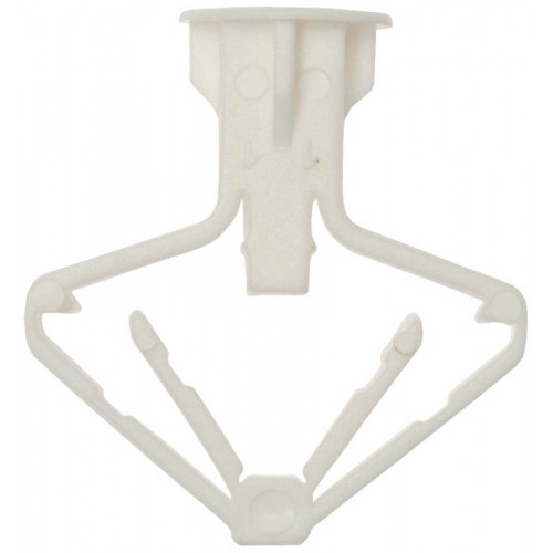 Дюбель для пустотелых конструкций "БАБОЧКА" ЗУБР 4-301325, применяется для крепления к тонкостенным материалам (фанера, ДСП, гипсокартон и т.п.) легковесных элементов, таких, как светильники, люстры, плинтусы, выключатели, рейки и проч. при помощи шурупов или саморезов. При установке дюбель раскрывается в виде зонта с обратной стороны листового материала, создавая надежное соединение. Специально разработанная форма дюбеля предотвращает проворачивание в отверстии.