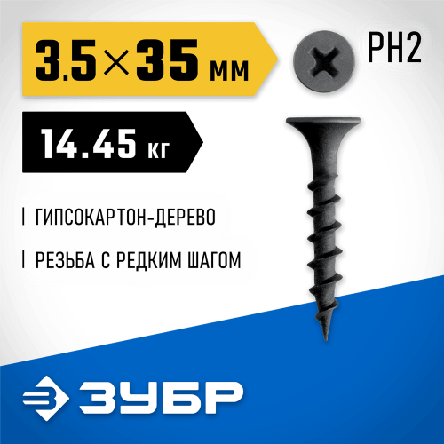 ЗУБР СГД 35 х 3.5 мм, саморез гипсокартон-дерево, фосфат., 14.45 кг (300030-35)