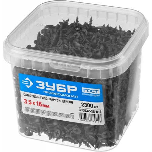 ЗУБР 16 х 3.5 мм, 2300 шт., СГД саморезы гипсокартон-дерево 300032-35-016 Профессионал