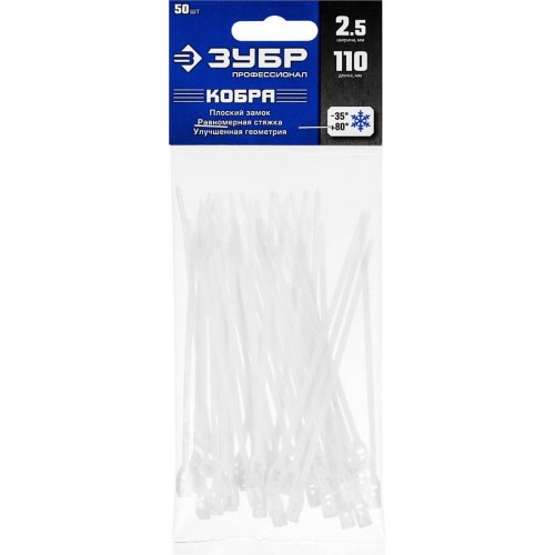 Кабельный стяжки ЗУБР 30930-25-110, применяются для быстрой стяжки кабелей электропроводки в пучок и их крепления к различным элементам конструкции при проведении электромонтажных работ. Хомуты нейлоновые отличаются повышенной морозоустойчивостью и термостойкостью. Диапазон рабочих температур от -35 °С до +80 °С допускает использование хомутов в самых разнообразных условиях. Обладают хорошими диэлектрическими свойствами. Изготовлены из высококачественного нейлона, характеризующегося отличной прочностью и эластичностью.