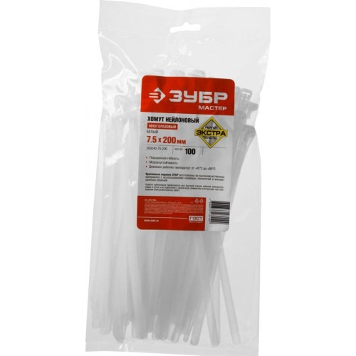 ЗУБР 200х7.5 мм, 100 шт., хомуты нейлоновые многоразовые белые 309240-75-200