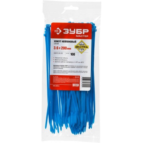 ЗУБР 200х3.6 мм, 100 шт., хомуты нейлоновые синие 309070-36-200