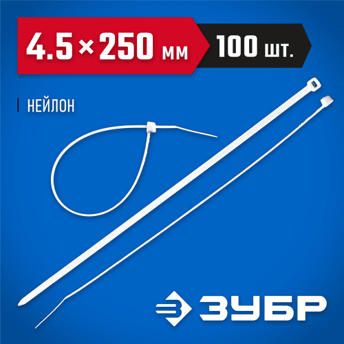 ЗУБР 250х4.5 мм, 100 шт., хомуты нейлоновые белые 309010-45-250