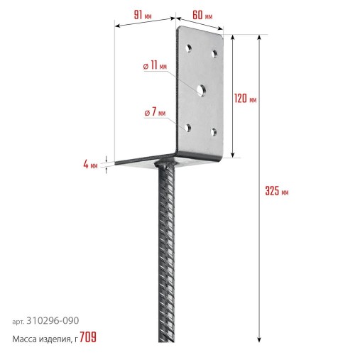 ЗУБР 91х120х60 мм, основание столба L-образное 310296-090