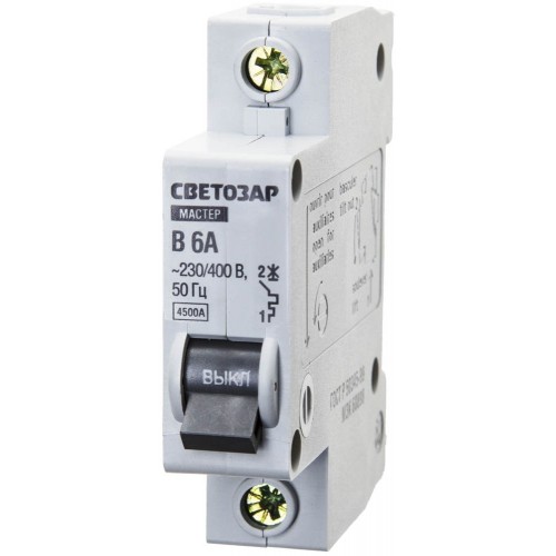 Автоматический выключатель СВЕТОЗАР 49050-06-B, предназначен для защиты электрических сетей от перегрузок. Изготовлен из термостойкого пластика, который обеспечивает долговечность и надежность конструкции. Тип расцепления данного выключателя - В, это значит что он выключается при 3-5 кратном превышении допустимого напряжения. Насечки на прижимных пластинах контактов обеспечивает надежный зажим проводов. Применяются для защиты электрооборудования от перегрузок и короткого замыкания в однофазных электрических цепях напряжением 220/400 В.