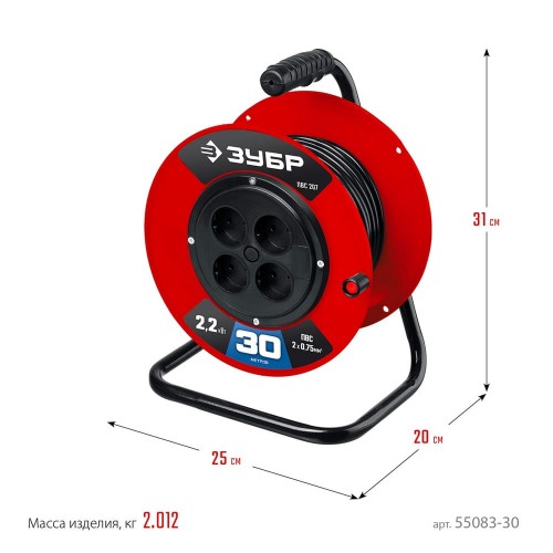 Удлинитель на катушке ЗУБР 55083-30_z01, применяется для подключения электрических приборов к сети, предназначен для использования, как в помещении, так и на улице. Для безопасного и легкого перемещения силового удлинителя ЗУБР по рабочей площадке предусмотрена прорезиненная эргономичная рукоятка. Устойчивая металлическая стойка. Заземляющая жила обеспечивает повышенную электробезопасность. Надежное крепление кабеля к клеммам, предотвращает нагрев и искрение.