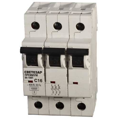 Автоматический 3-полюсный выключатель СВЕТОЗАР ″ПРЕМИУМ″ ″C″, 10 кА, 400 В выполняет функцию защиты установок от перегрузок и коротких замыканий. Он применяются в промышленных зданиях. Главная особенность при выборе выключателя: он должен соответствовать напряжению и расчётному току цепи. Прибор выключает сеть при 5-10 кратном превышении номинальной силы тока. Выключатель превосходит параметры ГОСТ (от -5°С до +40°С), поскольку устойчив к температурам от -40°С до +45°С.
