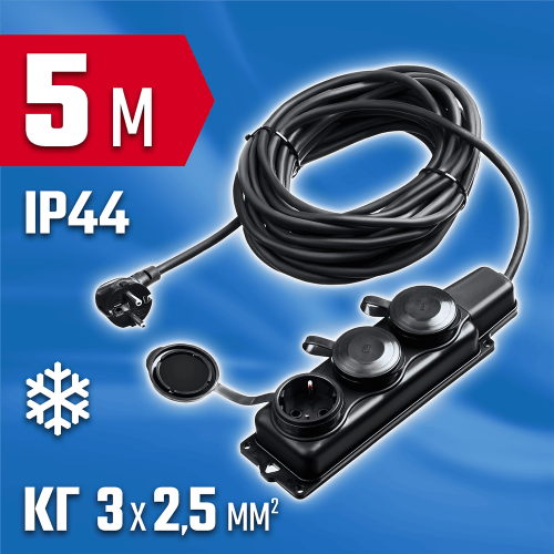 Удлинитель предназначен для подключения электрических приборов, которые находится на удалении от основного источника сети. Провод КГ (резиновая изоляция) устойчив к низким температурам до -40°С, к агрессивным средам, к деформациям и ударам. Позволяет выполнять работы в любое время года.