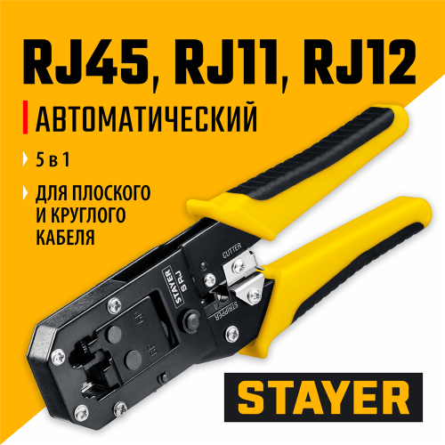 STAYER S-RJ, (RJ45, RJ11, RJ12), универсальный кримпер, Professional (22652)