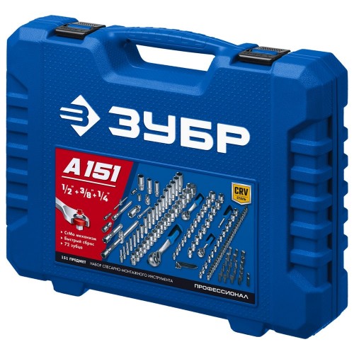 ЗУБР А-150, 151 предм., (1/2"+ 3/8"+ 1/4"), универсальный набор инструмента, Профессионал (27637-H150_z01)