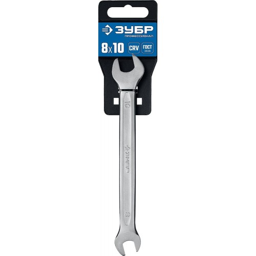 ЗУБР 8х10 мм, Cr-V сталь, хромированный, гаечный ключ рожковый 27010-08-10_z01 Профессионал
