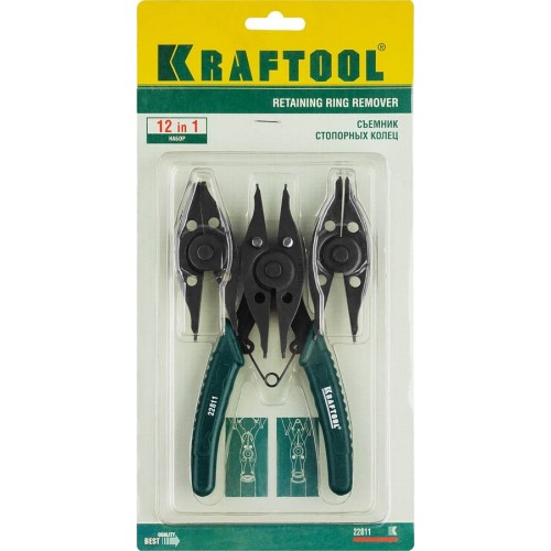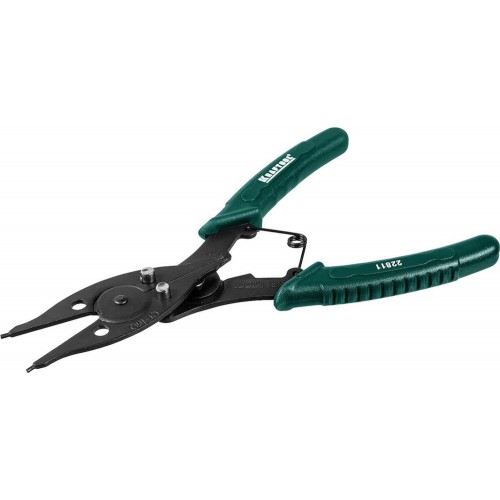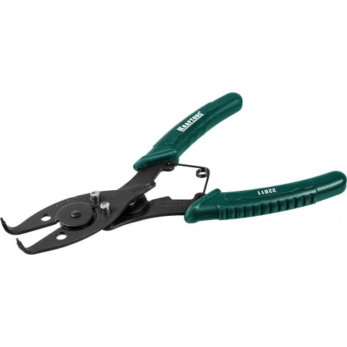 Съемник KRAFTOOL 22811, предназначен для монтажа и демонтажа внутренних и внешних стопорных колец. Пластиковые рукоятки съемника стопорных колец обеспечивают надежное удержание в руке без выскальзывания. Наконечники дополнительно закалены токами высокой частоты, поэтому обладают повышенной износостойкостью.