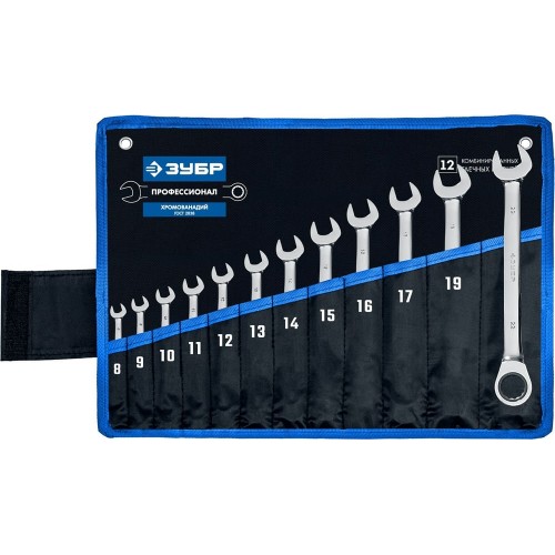 ЗУБР 12 шт, 8 - 22 мм, набор комбинированных гаечных ключей трещоточных 27075-H12_z01 Профессионал