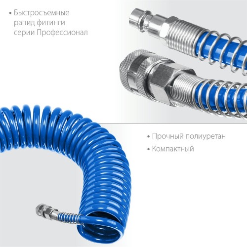 Воздушный шланг с фитингами ЗУБР 6472-15 предназначен для соединения компрессора с различными насадками.
