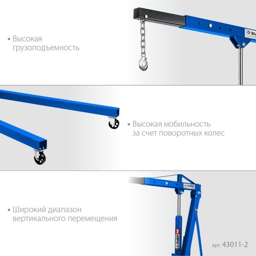 ЗУБР 2 т, 25-2200 мм, кран гидравлический складной КГС-2 43011-2 Профессионал
