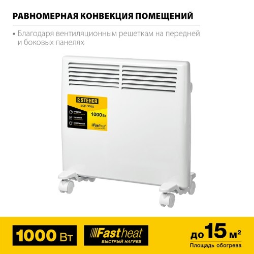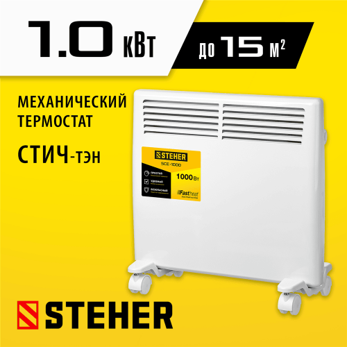 Электрический конвектор STEHER мощностью 1000 Вт - подойдет для обогрева любых домашних и офисных помещений площадью до 15 м2.
