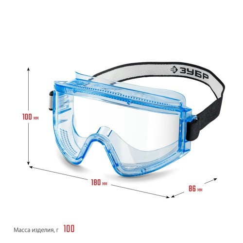 Панорамные защитные очки ЗУБР ПАНОРАМА П 110231, предназначены для защиты органов зрения от механических воздействий, от повышенных температур (от брызг расплавленного металла и горячих частиц). Прямая вентиляция обеспечивает свободную циркуляцию воздуха. Панорамное стекло обеспечивает широкий угол обзора. Антизапотевающее покрытие на внутренней стороне, устойчивое к истиранию и царапанам снаружи. Возможность использования с корригирующими очками. Мягкий и комфортный для ношения ПВХ корпус. Регулируемая наголовная лента.