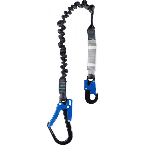 Строп, в сочетании со страховочным поясом или привязью, служит для остановки падения человека при работе на высоте.