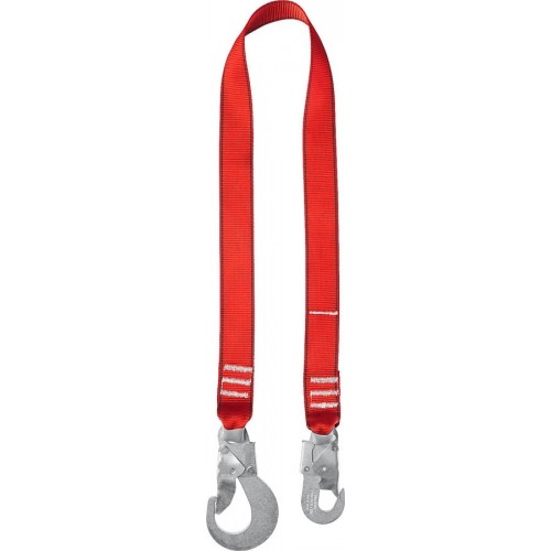Строп, в сочетании со страховочным поясом или привязью, служит для остановки падения человека при работе на высоте.