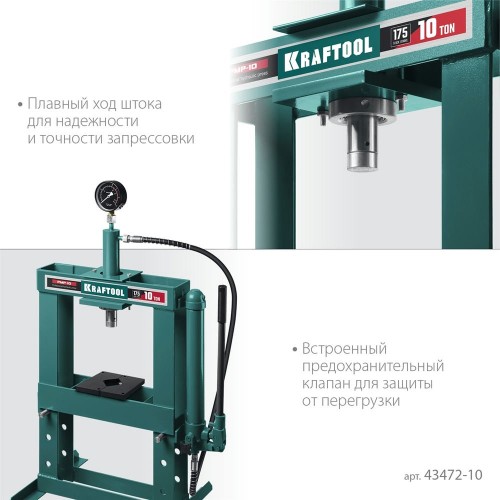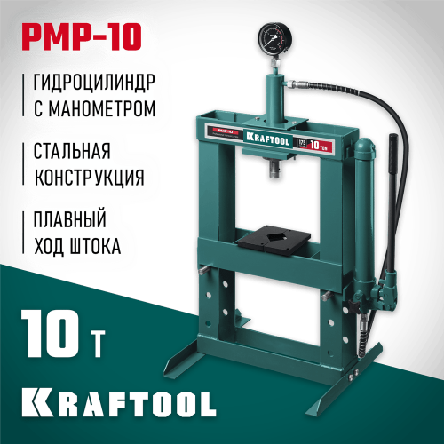 KRAFTOOL PMP-10, 10т, Гидравлический пресс с гидронасосом и манометром (43472-10)