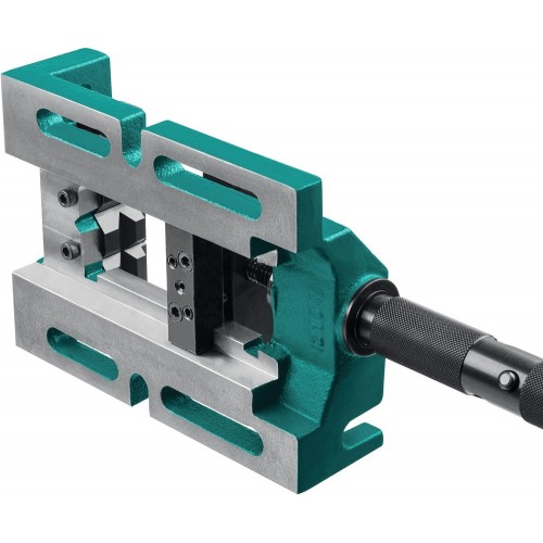 Тиски станочные трехсторонние сверлильные KRAFTOOL 32716-100, предназначены для надежного закрепления деталей при выполнении точных столярно-слесарных работ (на фрезерных, сверлильных, шлифовальных и других станках). Возможность установки тисков на две дополнительные поверхности. Шлифованное основание и направляющие. Высокопрочный чугун. Сменные губки изготовлены из высококачественной стали. Призматические пазы неподвижной губки позволяют зажимать горизонтально и вертикально цилиндрические заготовки.