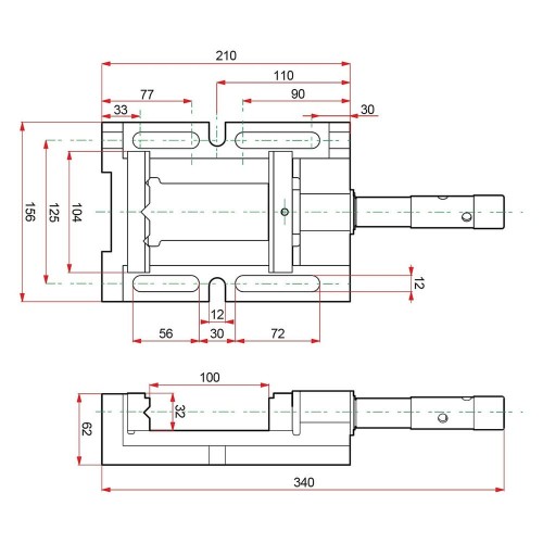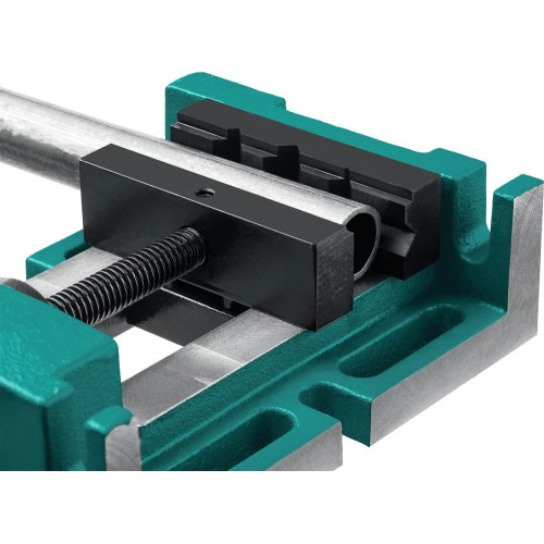 - Призматические пазы неподвижной губки позволяют зажимать горизонтально и вертикально цилиндрические заготовки