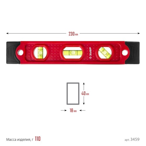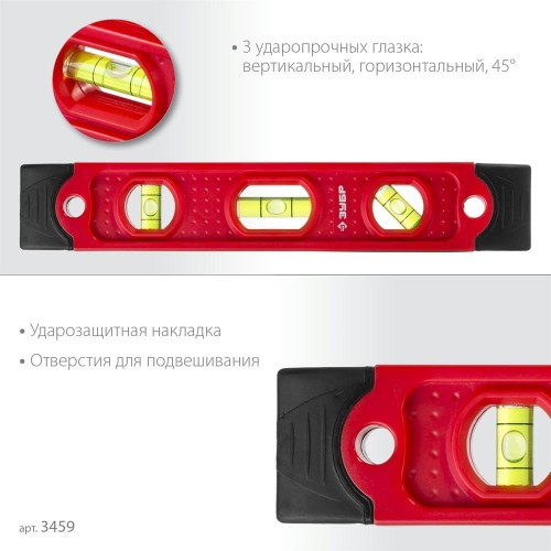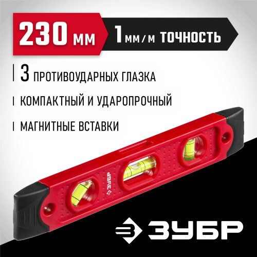 Уровень магнитный строительный ЗУБР 3459, применяется для точного контроля поверхностей в вертикальной и горизонтальной плоскостях. Компактный профессиональный высокоточный инструмент. Ударозащищенный, магнитный. Ампулы: горизонталь, вертикаль, 45 градусов. Диэлектрический корпус для электромонтажных работ.