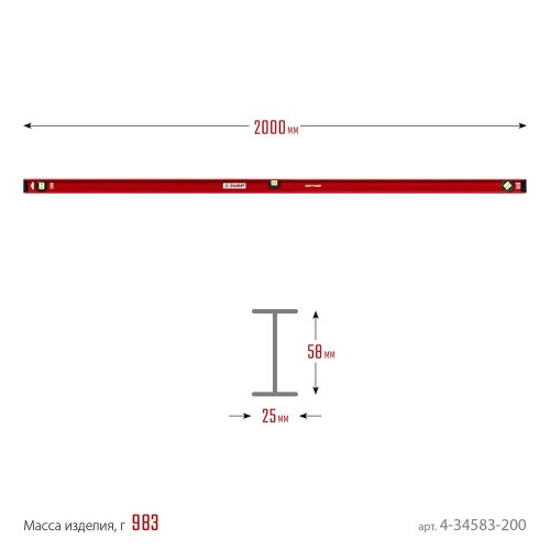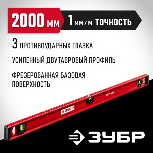 Уровень строительный ЗУБР 4-34583-200_z01, предназначен для контроля горизонтальности и вертикальности поверхностей. Точность измерений 1 мм/м. Фрезерованная базовая поверхность. 3 ударопрочные колбы. Поворотная колба на 360°.
