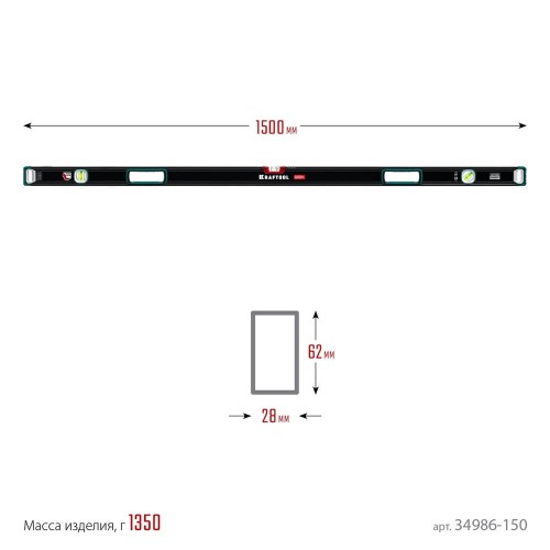 Уровень строительный KRAFTOOL 34986-150, предназначен для контроля горизонтальности и вертикальности поверхностей. Зеркальная колба упрощает измерения вертикальных поверхностей. 2 фрезерованных базовых поверхностей. Сверхпрочный утолщенный профиль X-HD из авиационного алюминия. Эластичные заглушки поглощают удар при падении и снимаются для измерения в торец. Большие удобные рукоятки. Колбы из ударопрочного акрила.