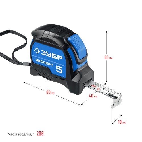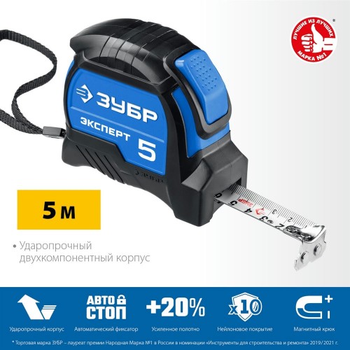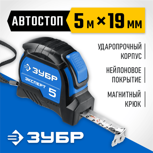 ЗУБР 5 м х 19 мм, рулетка измерительная Эксперт 34057-05-19_z02