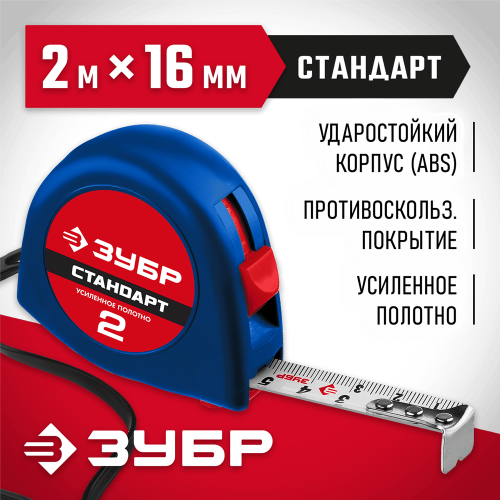 ЗУБР 2 м х 16 мм, рулетка 34016-2 Мастер