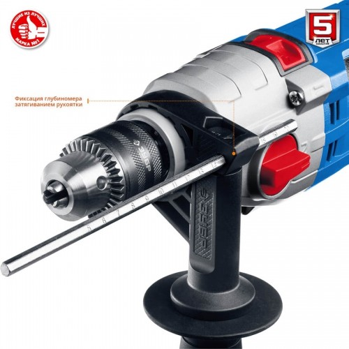 - Ограничитель глубины сверления позволяет бурить точно на заданную глубину при серийной работе