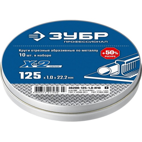 Набор кругов отрезных по металлу X-2 ЗУБР 36200-125-1.0-H10_z03, предназначены для углошлифовальных машин с рабочим диаметром 125мм при резке листового металла, металлических конструкций и заготовок, а также строительной арматуры диаметром до 22мм. Удобство при хранении и транспортировке. Наличие пакетика с влагопоглощающим силикагелем увеличивает срок годности кругов.