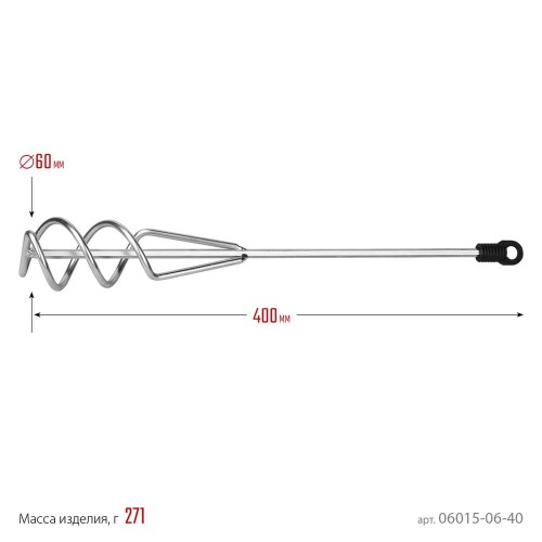 Миксер-насадка предназначен для перемешивания сухих и жидких песчано-гравийных смесей, в том числе плиточного клея, штукатурки и шпатлевки. Используется с дрелями и миксерами, обеспечивающими крепление шестигранного хвостовика насадки.