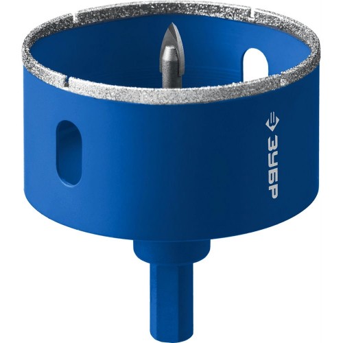 ЗУБР АГК d 60 мм (центр. сверло, трехгр. хвост, Р60), Алмазная коронка, Профессионал (29850-60)