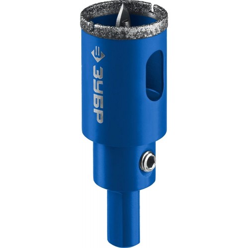 Буровая коронка алмазная ЗУБР 29850-35, применяется для сверления отверстий в керамической и кафельной плитке при обязательном водяном охлаждении. Высокая статическая и динамическая прочность алмазов. Равномерное распределение алмазного зерна обеспечивает аккуратное сверление материала без трещин и сколов. Центрующее сверло исключает возможность смещения инструмента во время работы.