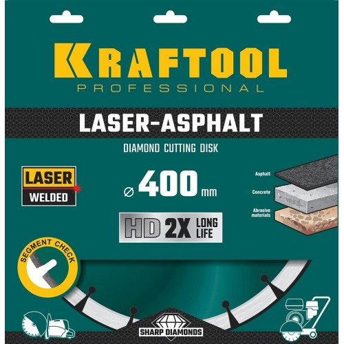 KRAFTOOL Ø 400Х25.4 мм, алмазный, сегментный, по асфальту, диск отрезной LASER-ASPHALT 36687-400