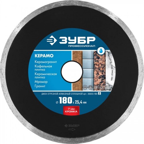 Алмазный отрезной диск ЗУБР 36655-180_z02, применяется для резки керамогранита, мрамора и других строительных материалов при обязательном водяном охлаждении. Высококачественная сталь обеспечивает прочность и долговечность диска, режущий слой высокой плотности из искусственных алмазов позволяет легко и максимально-точно производить работы. Алмазные отрезные круги ЗУБР – это оптимальное соотношение качества и цены в сочетании с безупречным функционалом.