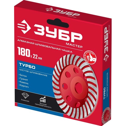 ЗУБР Турбо d 180 мм, Сегментированная алмазная шлифовальная чашка, Мастер (33375-180_z01)