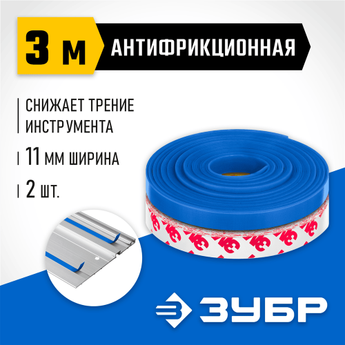 Антифрикционная лента для направляющих шин ЗУБР 32332-AF используется совместно с направляющей шиной. Антифрикционная лента значительно снижает трение инструмента о поверхность шины. Совместима с направляющими шинами ЗУБР ППШ. Для монтажа необходимо использовать любую двухстороннюю клейкую ленту на тонкой основе по ширине используемой ленты (в комплект не входит).