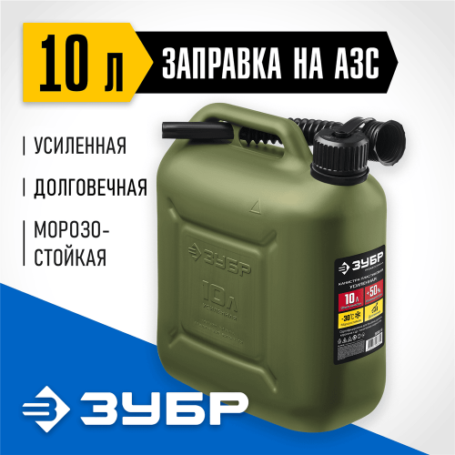 Пластиковая канистра усиленная ЗУБР 38365-10 предназначена для хранения и транспортировки топлива и технических жидкостей. Устойчива к механическим воздействиям даже при отрицательных температурах (до -30°C). Особо прочные утолщенные стенки. В состав пластика входят антистатические добавки. Крышка с маслобензостойким уплотнителем. Гибкий носик для заливки ГСМ. Защита крышки от случайного откручивания. Выемка на дне для удобного хвата при заливке ГСМ. Допускается использование на АЗС.
